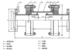 新躍D型大撓度松套伸縮接頭也是我公司專門生產的一種主要用于金屬管道的柔性連接裝置,它是我公司專門生產的一種由短管法蘭、本體、壓蓋、檔圈、限位塊、密封副、壓緊構件組成的五金配件,在制作過程中它的金屬材質采用的是Q235碳鋼材質制成的,其密封圈材料采用的是NVR材質制成的,這樣就使得我們生產出來的產品在使用過程中具備了優越的耐腐蝕性能、耐高溫性能以及優越的耐腐蝕性能等特點。